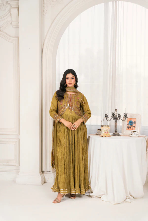 Kindly note: This 3pc dress includes a Frok, Cotti and Dupatta in it. Actual product color may slightly differ from images due to lighting and screen display settings.